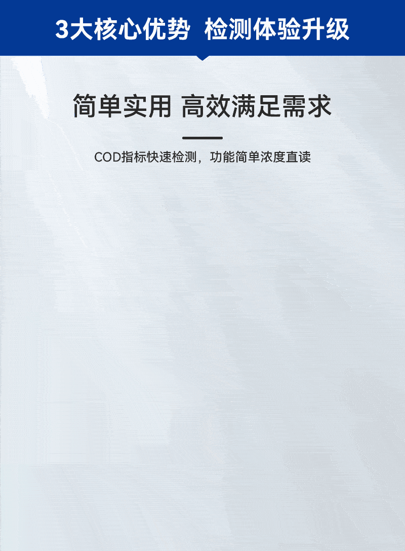 1、簡單實用高效滿足需求,COD指標快速檢測,功能簡單濃度直讀