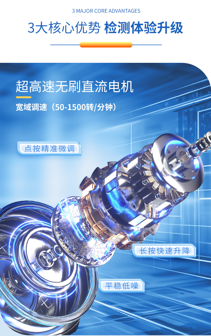 1、強勁動力,無極調速:50-1500轉/分鐘寬幅調速,點按精準調節(jié),長按快速增減,操作更高效;